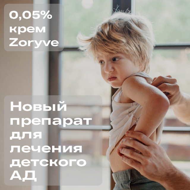 Американское Управление по санитарному надзору за качеством пищевых продуктов и медикаментов (FDA) разрешило использовать в лечении легкого и среднетяжелого атопического дерматита у детей в возрасте от 2 до 5 лет крем Zoryve 0,05% (рофлумиласт, русское название “Зорив”)